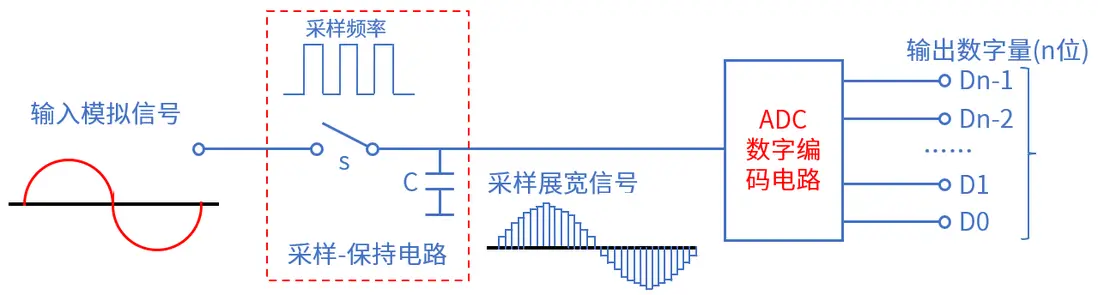 採樣和保持通常是在採樣-保持電路中完成,量化和編碼通常在ADC數字編碼電路中完成。