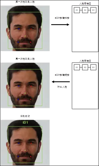 1,如果長按按鍵,系統會將人臉數據傳入分區表。