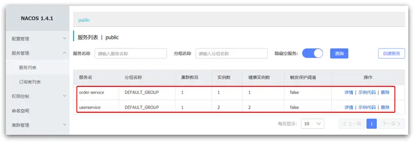 重啓微服務後,登錄nacos管理頁面,可以看到微服務信息: