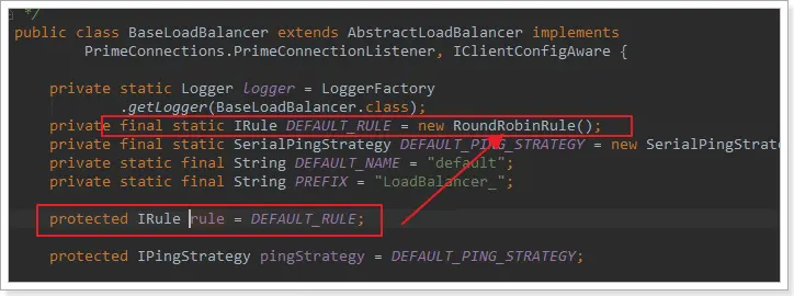 這裏的rule默認值是一個RoundRobinRule,看類的介紹:
