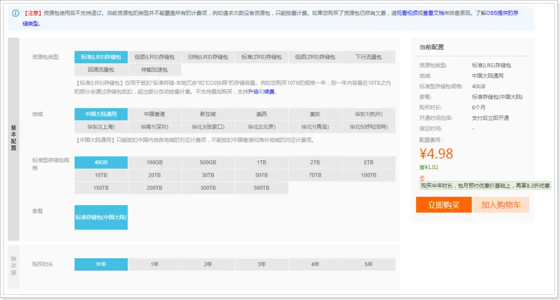 説明:OSS的上行流量是免費的,但是下行流量是需要購買的。