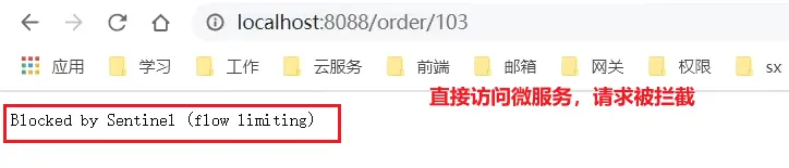 默認情況下,發生限流、降級、授權攔截時,都會拋出異常到調用方。異常結果都是flow limmiting(限流)。這樣不夠友好,無法得知是限流還是降級還是授權攔截。