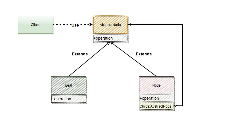 - 組合節點:一個可以包含多個對象的複合對象,意味着它下面可能還會有其它組合節點和葉子節點