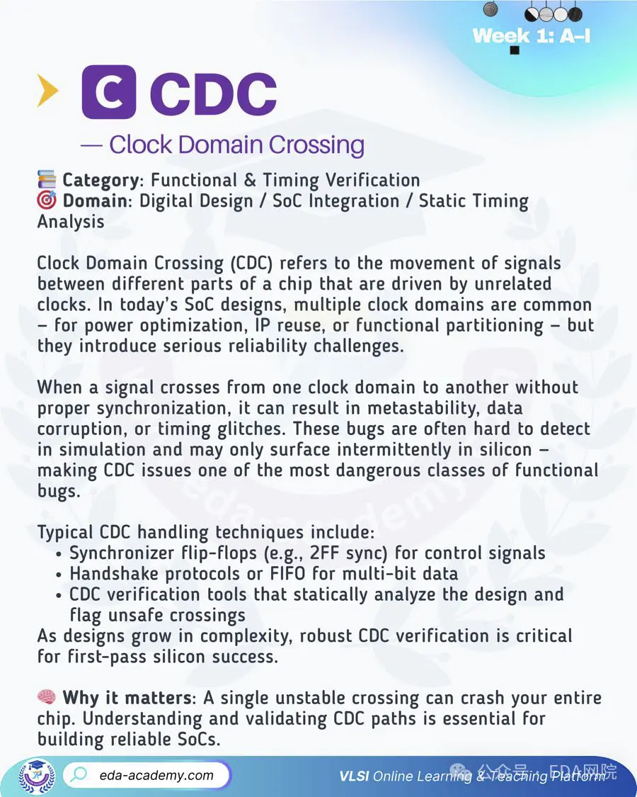 在 VLSI、數字 IC、驗證或物理設計的世界裏,工程師的日常語言幾乎被縮寫“統治”——有些耳熟能詳,有些晦澀神秘,還有些讓新人望而生畏。本系列將從 A 到 Z,把這些高頻縮寫逐一拆解成“真正能聽懂的工程語言”,幫助你係統補齊基礎概念。
