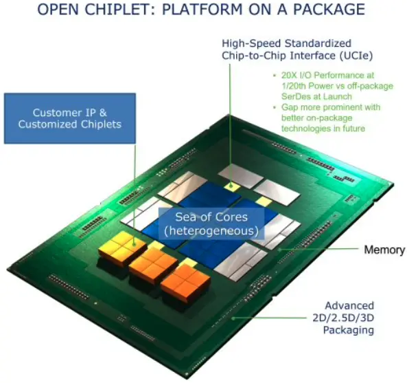 Chiplet 模式:將功能模塊拆分為可複用的小芯片(Chiplets),通過封裝級互連實現 SoC 集成,提升產率並降低成本。