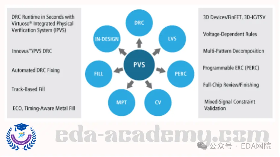 Calibre 長期以來在 DRC/LVS 領域享有“行業標準”之稱。其工具套件包括 nmDRC、nmLVS 等,被大量 foundry 用作籤核平台。