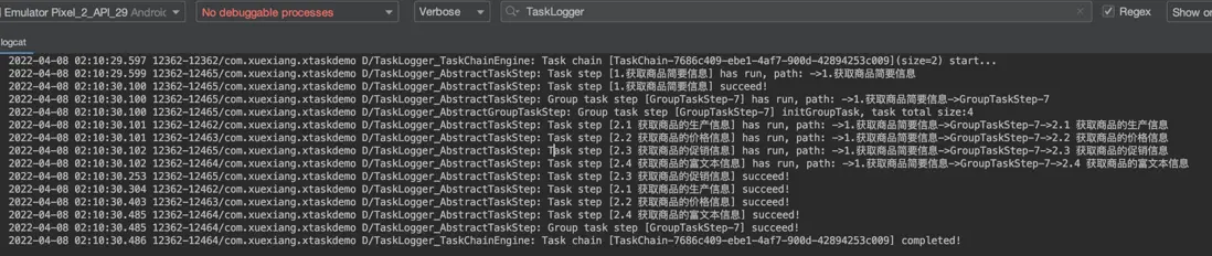 2.XTask遵循的是面向對象的編程原則,設計之初就嚴格遵循面向對象的設計模式原則。充分減少業務與業務、業務與數據流之間的耦合,這樣即使你的數據結構或者業務流程出現重大的變化,主幹代碼也不會有很大的變動。而且XTask擁有較強的日誌記錄系統,能夠非常清晰的記錄你當前任務鏈的執行過程和所在線程的信息(自動的),當任務執行出現問題的時候,便能很快地定位出問題產生的位置。而對於初入項目的開發人員來説,也能快速從任務執行過程的日誌中去理解項目的主體業務。待主體業務流程有了清楚的認知後再去仔細看子業務,這樣才能全方位理解項目的業務,也更利於項目的維護。
