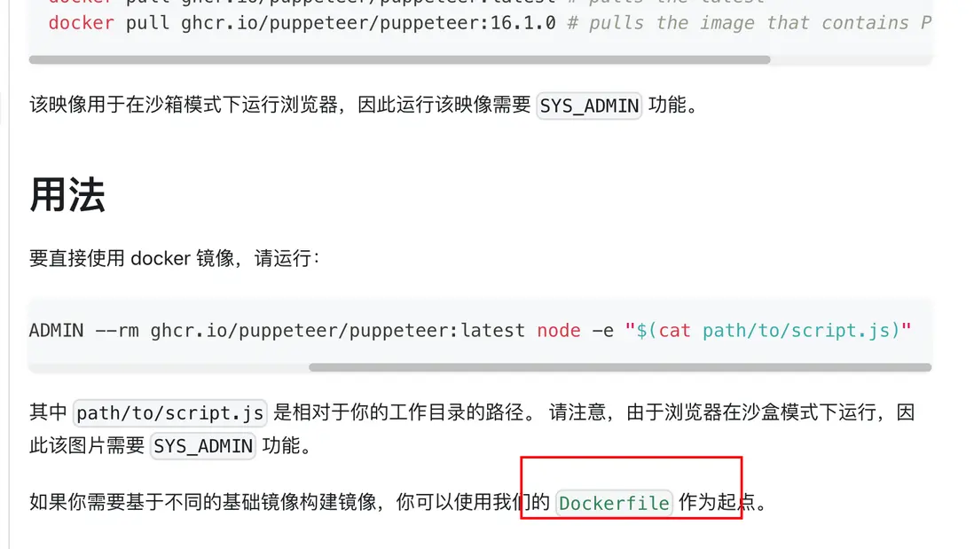 我看到官方文檔也有關於Puppeteer Docker鏡像相關的説明,但文檔沒有詳細説明如何使用。