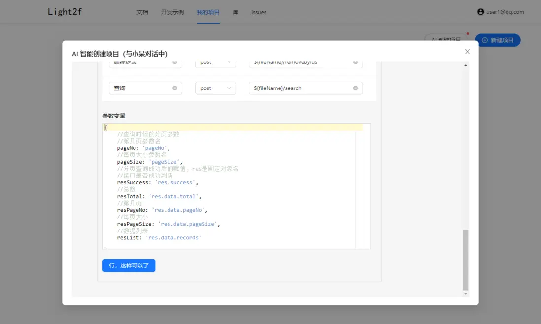 的接口應該是不一樣的(每個頁面的前置變量是一樣的),所以 ${fileName} 就是變量,也對應下一步的生成的頁面名稱。而參數變量則是接口入參與返回的數據結構,為了支持不一樣的後端數據結構。