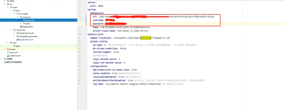 然後就完成了,可以看到項目的 com.light 下創建了個 business 目錄,裏面就是生成的代碼了,所有的功能就已經完成了