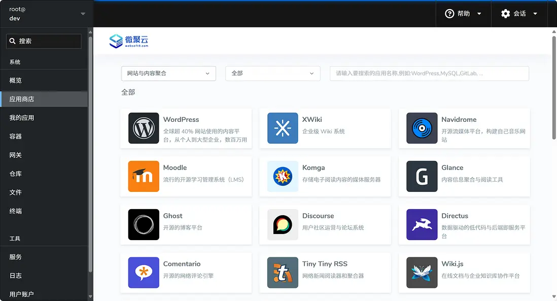 用户只需幾步配置,即可完成多應用環境的搭建,避免繁瑣的依賴關係處理,適合缺乏運維經驗的個人站長。