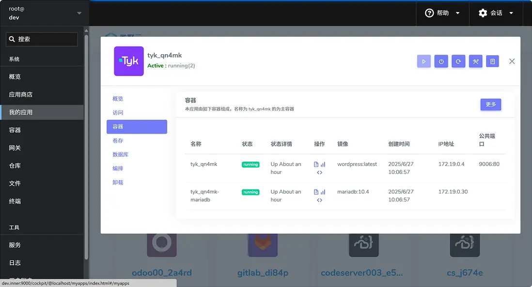 支持容器化部署與多應用隔離,用户可在一台服務器上託管多個項目,互不影響,資源可控。