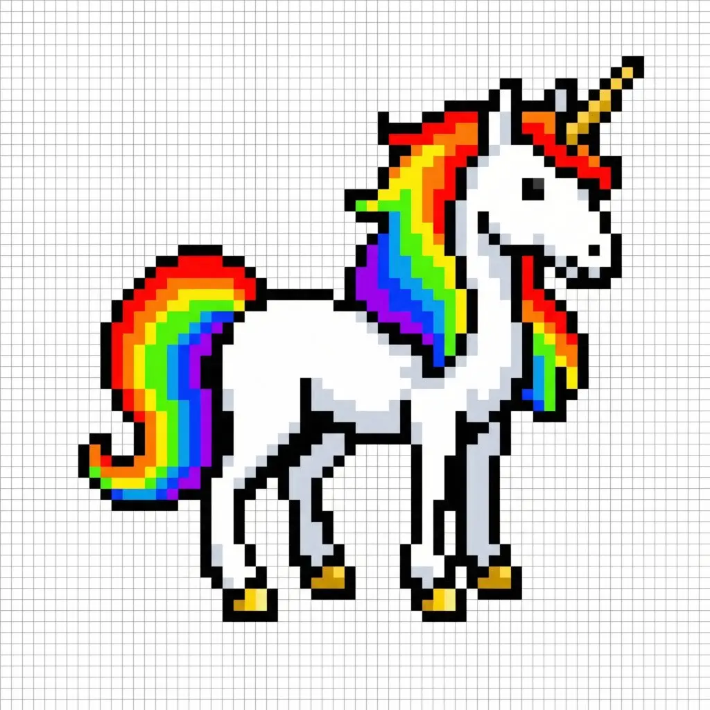“生成一個獨角獸的像素藝術精靈,使其完美契合此 64×64 網格圖像。使用高對比度顏色。”