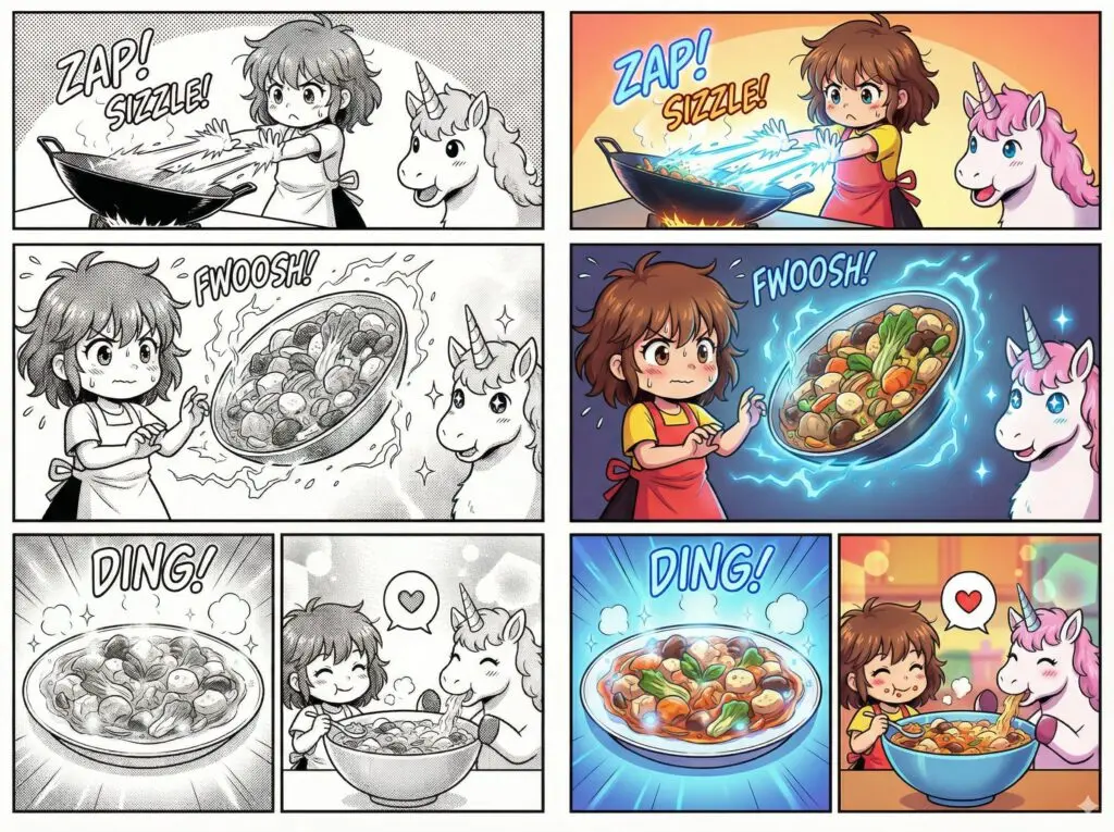 無需網格即可生成連續的藝術圖或故事板,從而確保在一次操作中實現連貫的敍事流程。