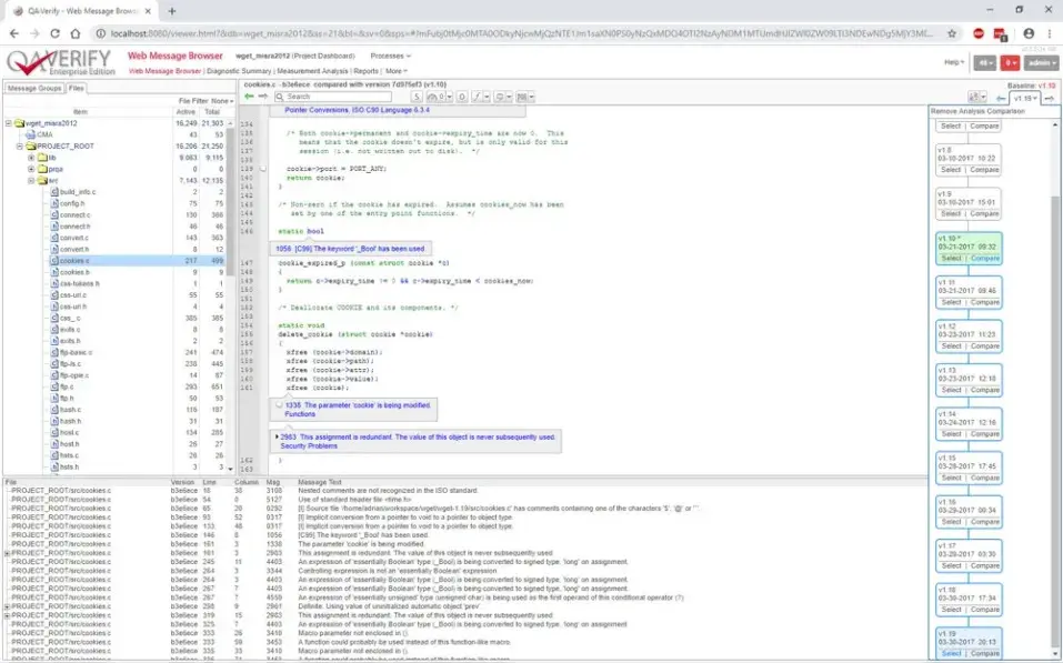 在某些情況下,您可能會將源代碼從一個項目重用到另一個項目。但有些源代碼不是按照編碼標準開發的。如果您需要實現合規性(例如 MISRA),這可能會產生問題。通過使用 Perforce靜態代碼分析器(例如適用於C/C++的Helix QAC,或適用於C、C++、C#、Java、JavaScript和Python的Klocwork),您可以輕鬆查看代碼中的錯誤所在。