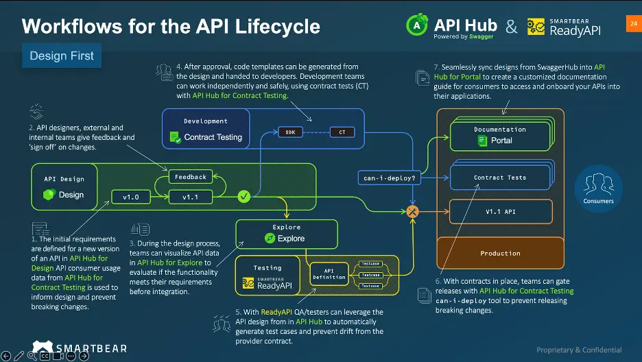 設計優先不僅僅是一種流程,更是一種強調清晰性、協作性與速度的理念。當它與SmartBear的API Hub和ReadyAPI結合使用時,就形成了一個完整、一體化的開發工作流: