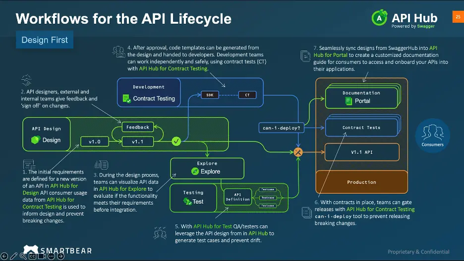 要高效執行設計優先方法,需要依賴一個能夠促進協作、強化標準並連接所有利益相關者的平台——SmartBear API Hub正是這樣一個集中式平台。