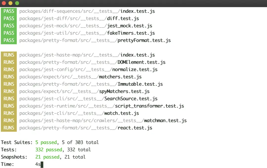 - 快照測試:保存運行的測試快照,並在測試重新運行時對比結果。