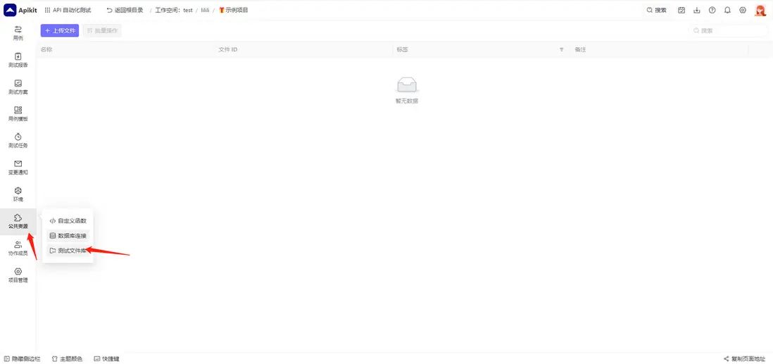 在 APIkit 的私有云版本中,提供了測試文件庫功能。不過目前該功能僅供私有云產品,線上SaaS產品不提供測試文件庫功能