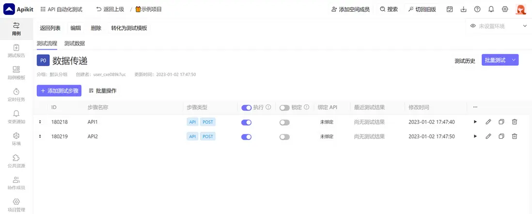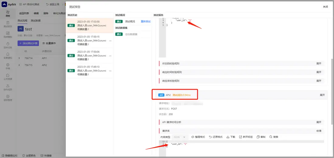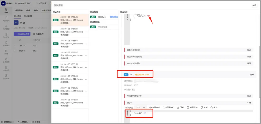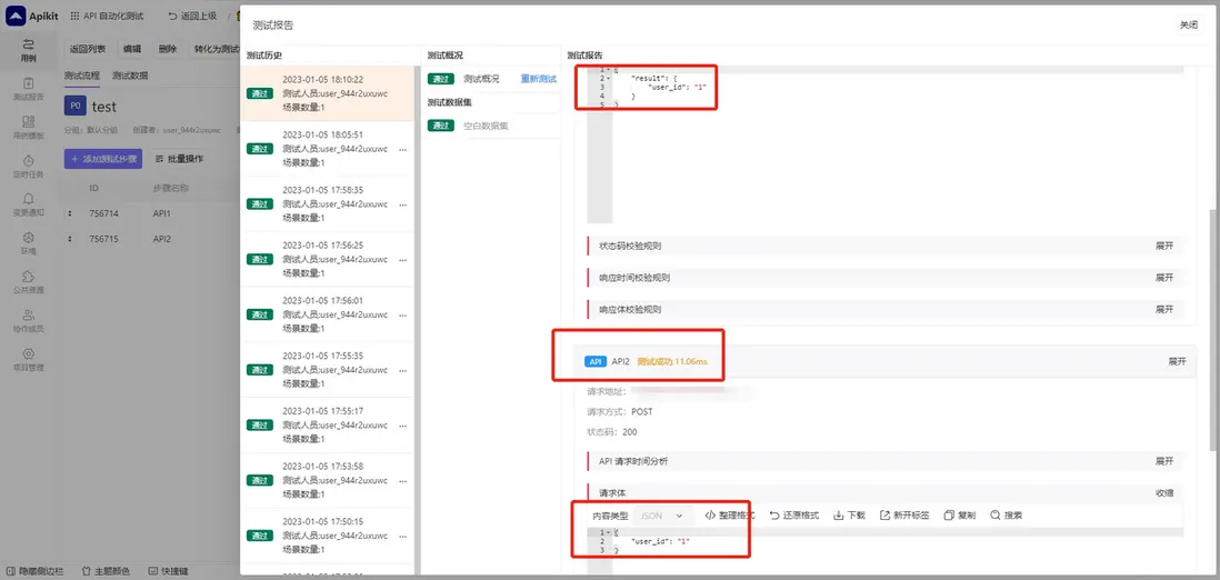 在自動化測試中,用例裏的“API”和“API2”可以稱為“測試步驟”,API1和API2在同一個用例時的情況: