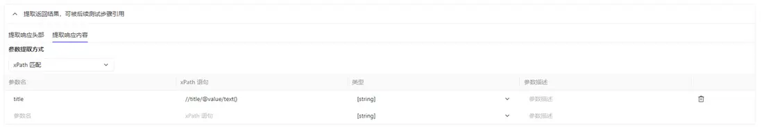 設置API1的參數提取方式為xPath匹配,分別設置參數a、b的值:a=//title/@value/text() , b=//title/@value,如下圖所示: