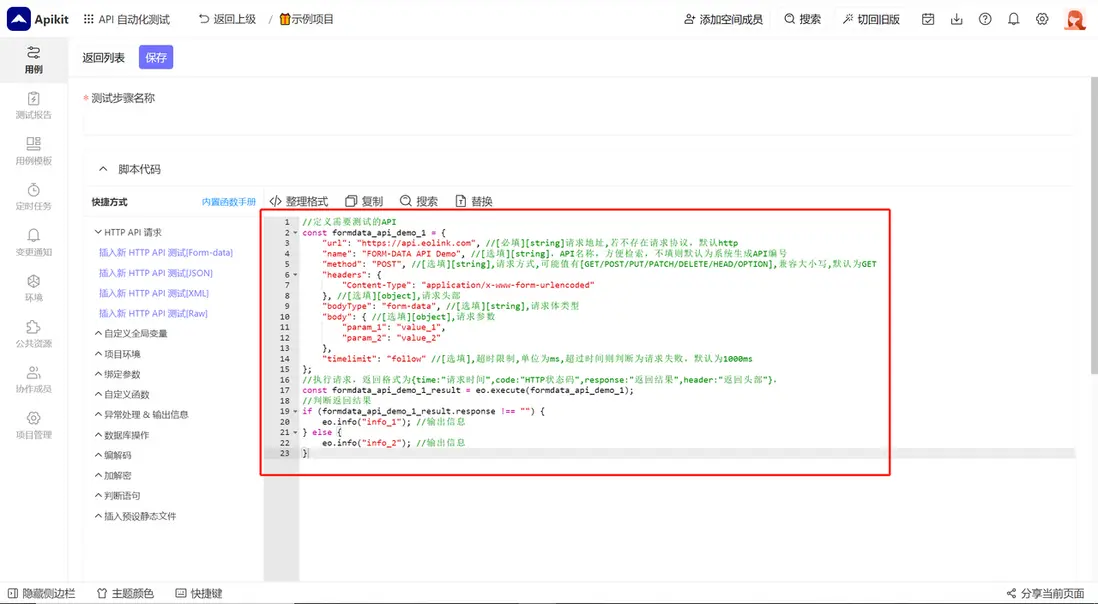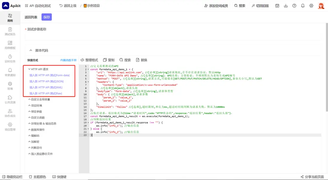 進入編輯用例頁面,點擊 新API測試 新建一個 API 請求。