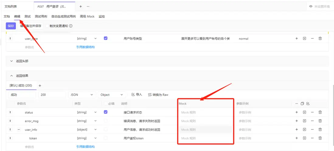 1、 進入API文檔編輯頁,選中需要編輯的返回結果