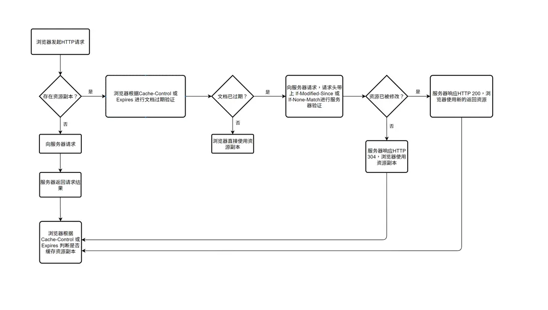 當瀏覽器第二次發送請求時,會在請求頭的 If-Modified-Since 字段加上上次請求返回的 Last-Modified 時間。HTTP 服務器收到該時間後,會對該資源的修改時間進行對比,如最新修改時間一致,則證明該資源無更新,然後響應 304 告訴客户端可直接使用瀏覽器資源副本。若最新修改時間不一致,服務器則響應 200,並向客户端發送新的資源。