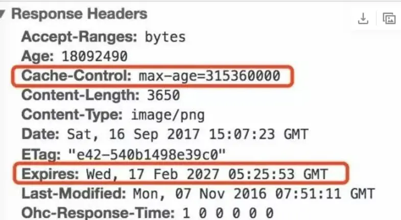 當客户端第一次請求完成的時候,服務端會在響應頭加上 Cache-Control 或 Expires 字段,用來表示該資源的有效時間。
