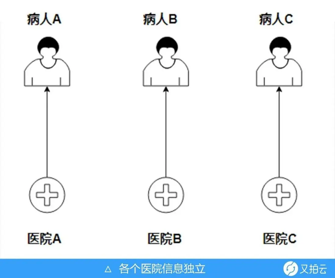 相信大家也經常會遇到這樣的情況,同樣的檢查,去不同的醫院就得重複做,浪費時間不説,主要是浪費錢呀!這事兒讓許多人都很費解 ... … 其實我們可以把每家醫院都看成是一個數據庫,有病人來看病,醫生會把病人的信息上傳到自家醫院的數據庫之中。但是每家醫院的數據庫都是獨立的,各管各的,互相不通氣。所以,雖然在上一家醫院做了檢查,但換了家醫院之後,病人的信息就沒了,所以需要從頭開始。也就是上面二狗子的遭遇。