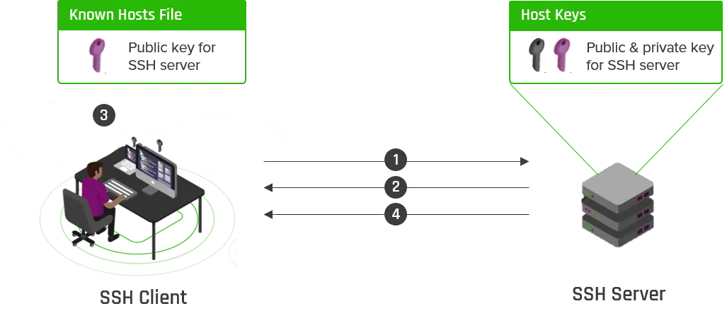 SSH 協議內置於 Unix 和 Linux 服務器中,以實現系統之間的安全連接。該連接由請求連接到 SSH 服務器的客户端建立。SSH 客户端啓動連接建立過程,並使用公共密鑰加密技術來驗證 SSH 服務器的身份。在設置階段之後,SSH 協議使用強大的對稱加密和哈希算法來確保客户端和服務器之間交換數據的私密性和完整性。