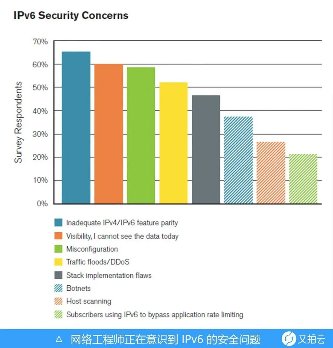 目前,已經有大部分網站開始引用 IPv6,但是 IPv4 與 IPv6 的設計並不是可互操作的,這使得 IPv4向 IPv6 的過渡變得複雜了許多,這其中也包含了網絡安全領域。