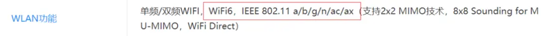 如何查自己的設備是否支持 Wi-Fi 6 呢?可以去查下自己的手機配置説明,例如二狗子手機的 WLAN 有以下説明。