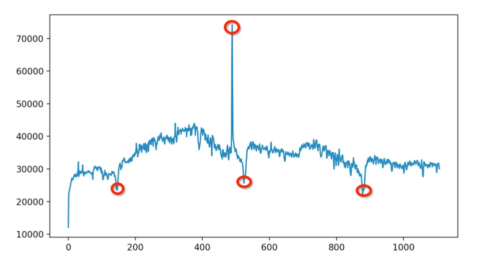 上圖是某應用 2016 年 8 月到 2019 年 9 月的日活統計。這麼直接一看就可以看到它有很多的突變點,這些點可能就是它的異常行為。而異常值檢測要做的就是使用統計或者機器學習的方法將這些異常點找出來。