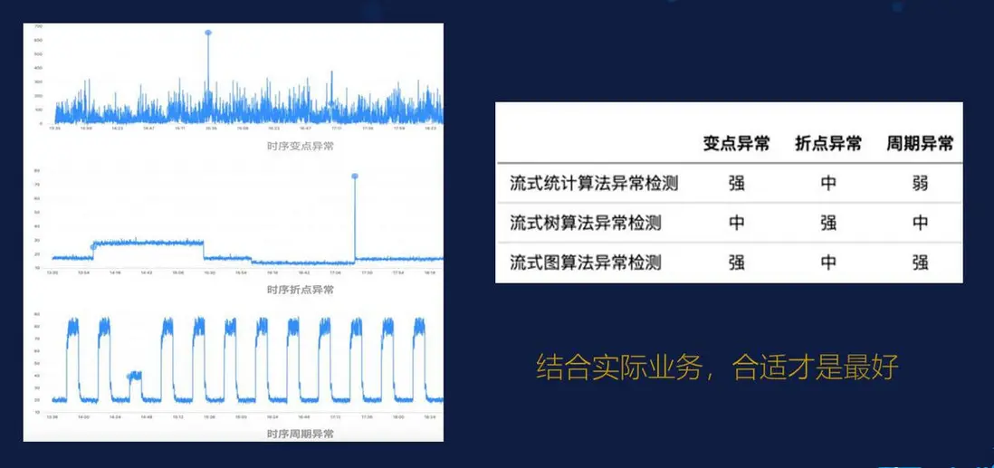 - 時序週期異常:對於這種週期異常的檢測,推薦的檢測方法是流式圖算法。這裏説的圖算法其實是指圖神經網絡。這點我之前並沒有提到,是因為目前圖算法還處於一個初步階段,它的研究並不成熟,把圖神經網絡和異常值檢測結合起來的運用還特別的少。但是因為圖神經網絡現在的發展很快,所以在未來它一定會在異常值檢測方面有很好的效果。