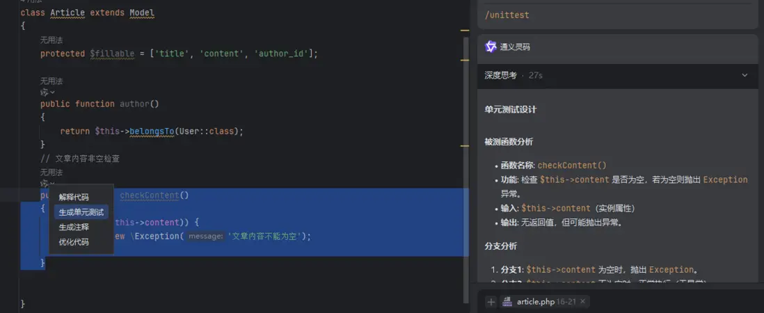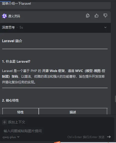 通義靈碼作為一款智能編碼助手,為 Laravel 開發提供了全方位的輔助功能。