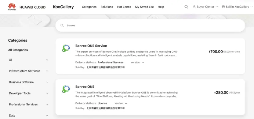 HUAWEI CLOUD搜索Bonree ONE即刻下單