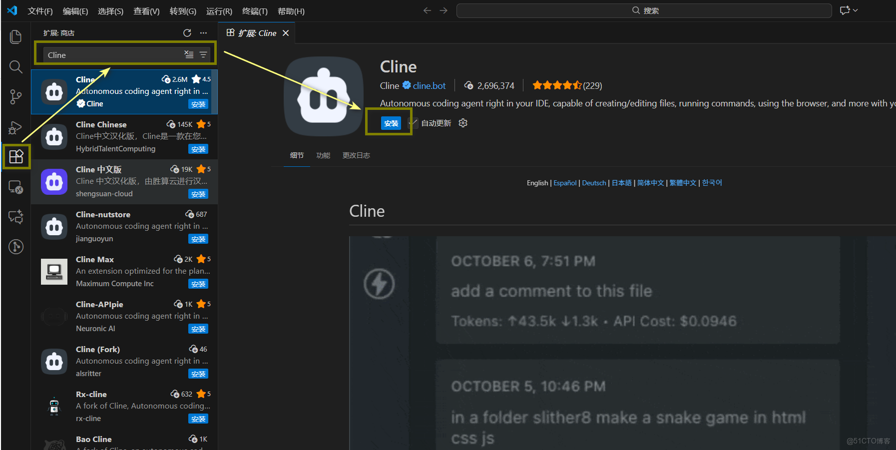 - 安裝Cline(也可以選擇第二個中文漢化版)