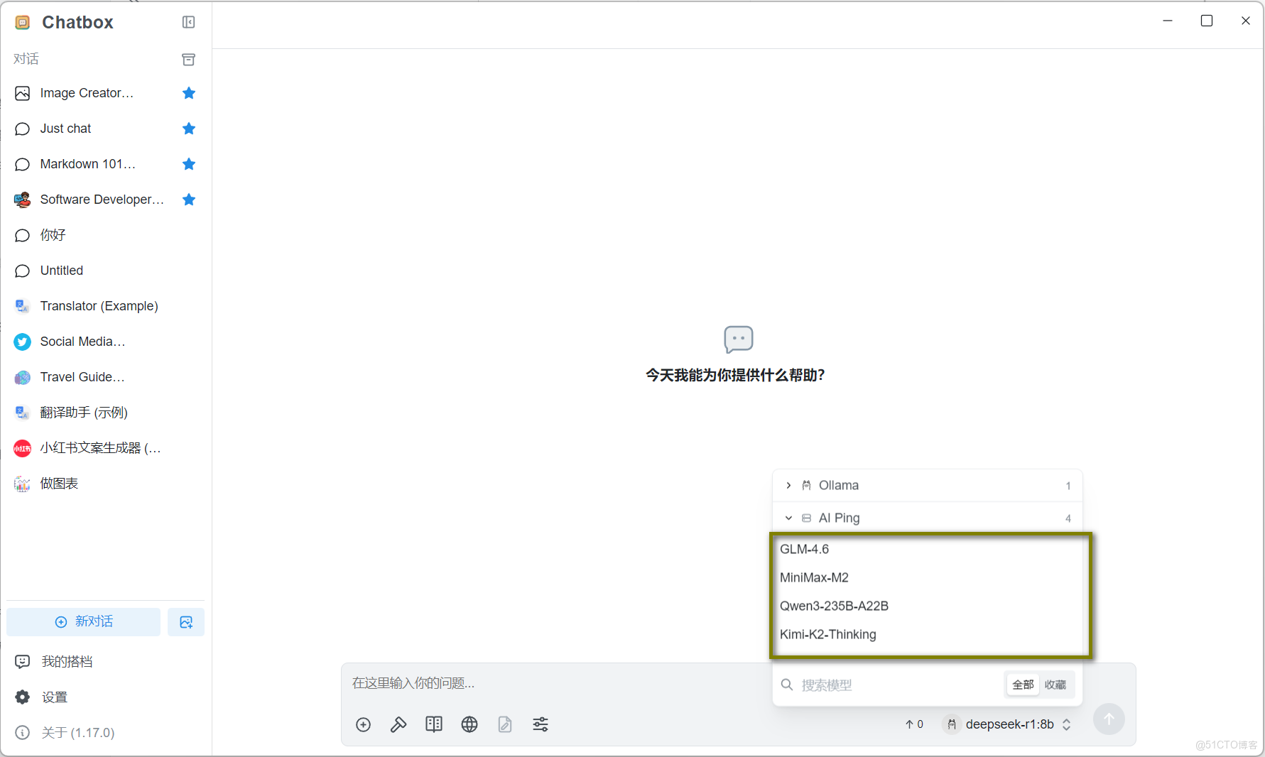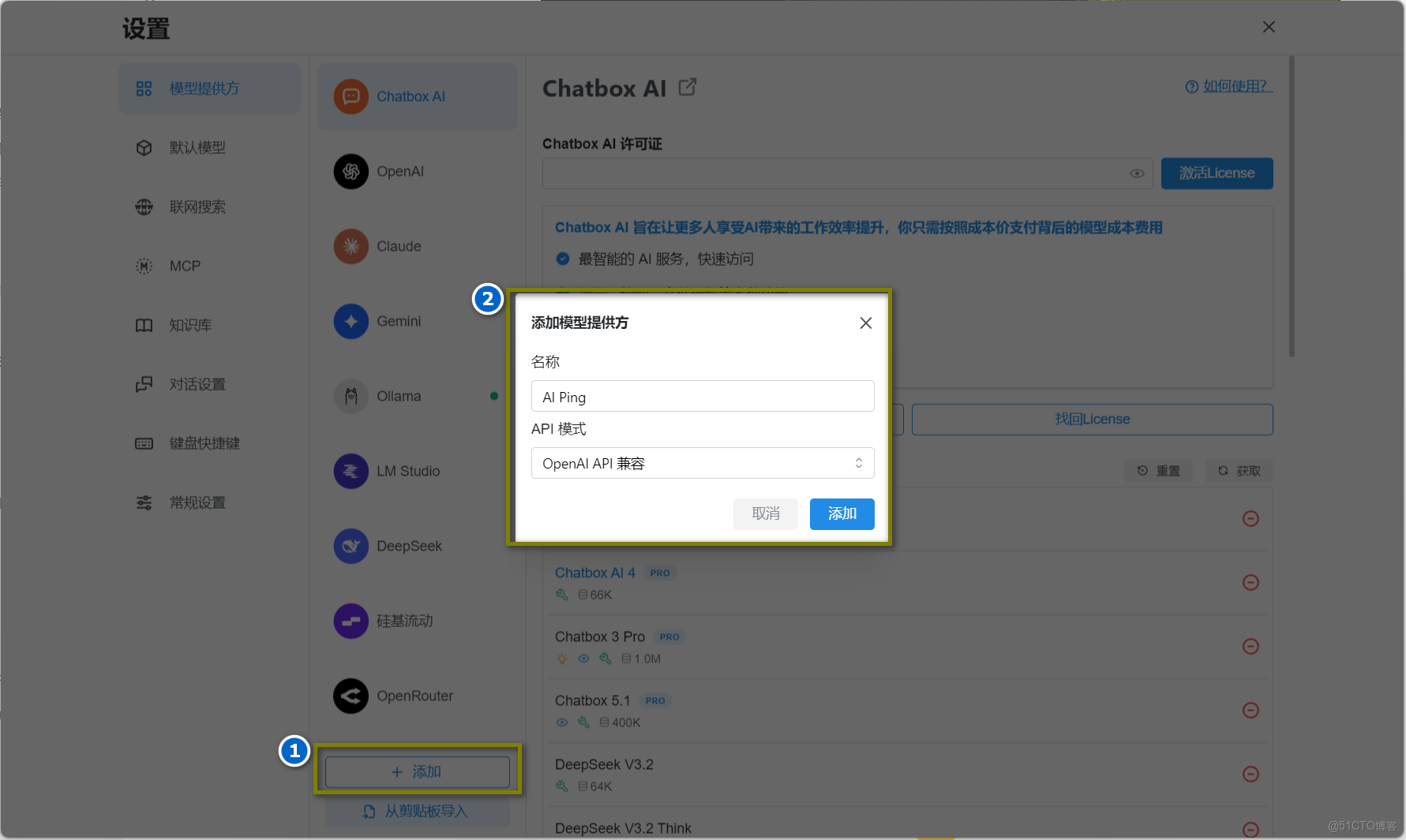 使用ChatBox+AIPing的方式,在ChatBox中配置AIPing的API 秘鑰,就能使用AIPing的所有大模型。