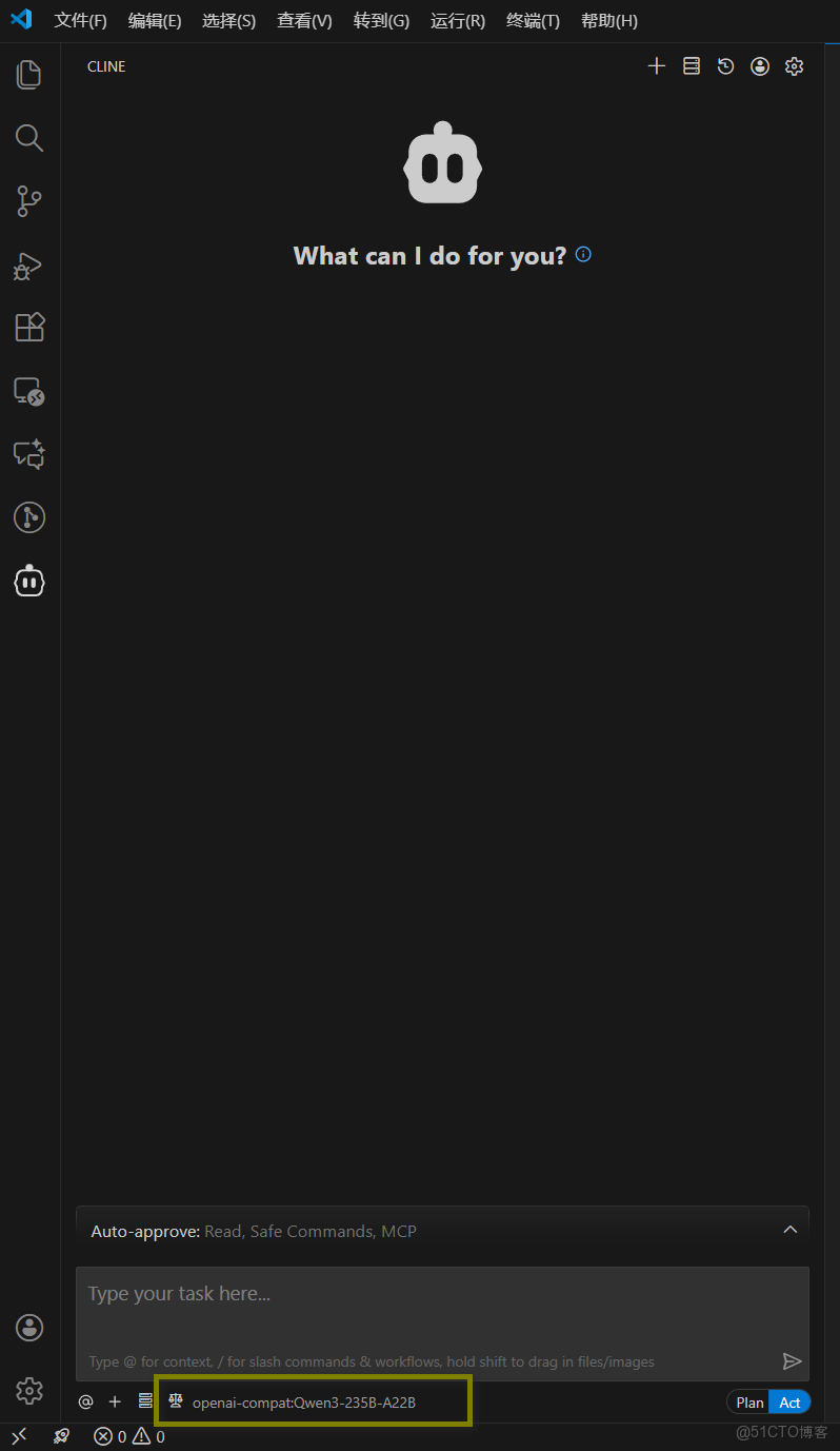 安裝完成後,左側導航欄就能看到Cline的圖標。