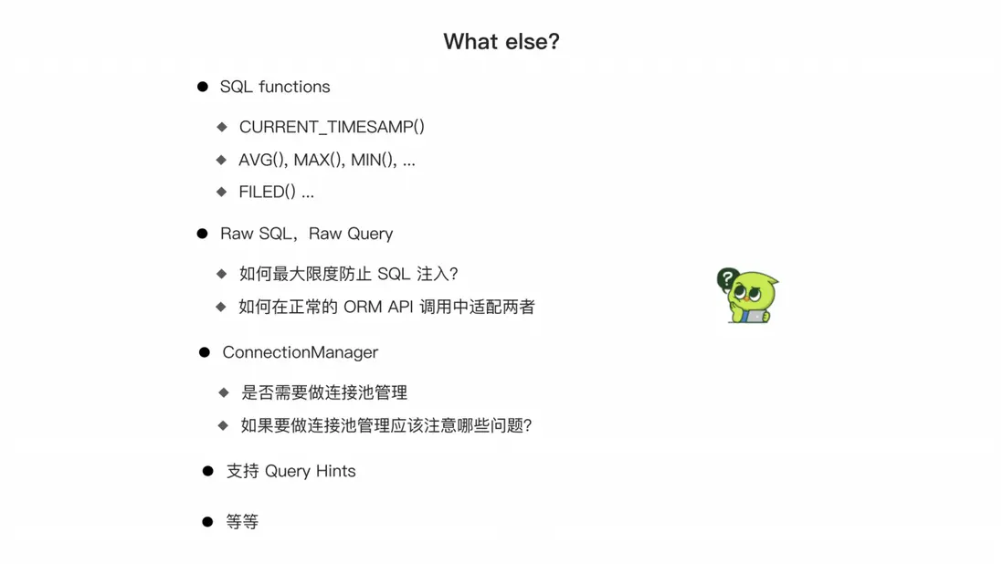 我們思考一下一個相對成熟的 ORM 還需要哪些改進?