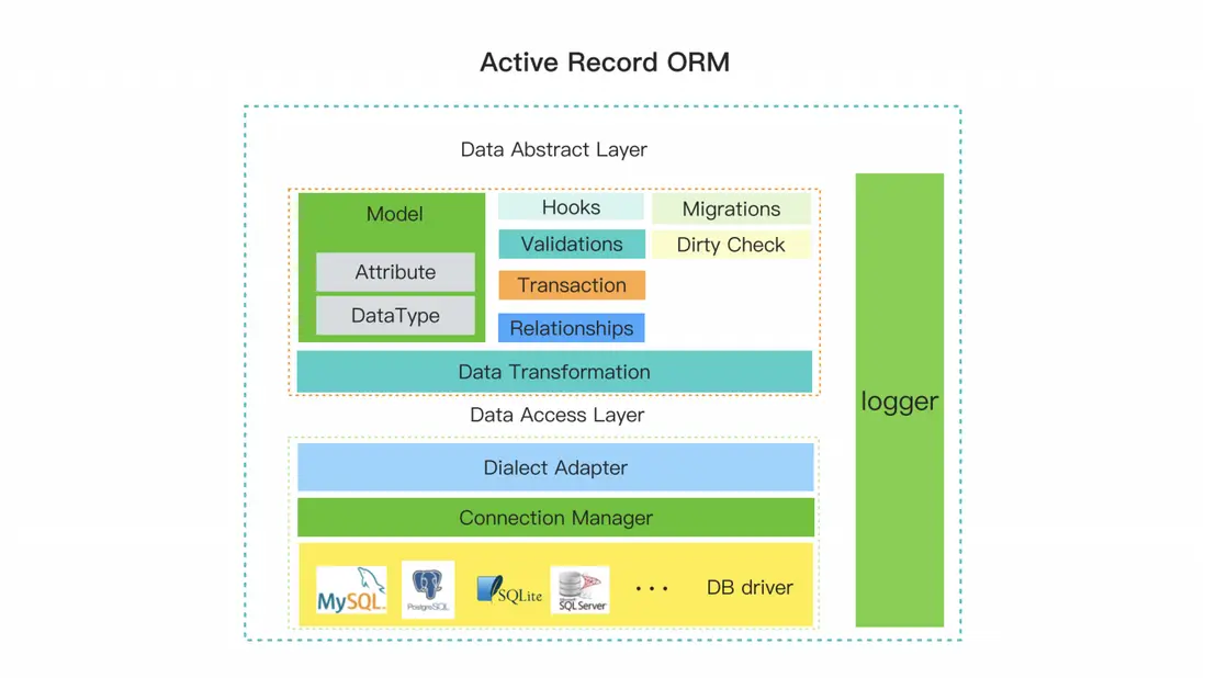 - Dialect Adopter 是核心功能,將 model 的 API 調用轉換成對應的 SQL,並在轉換過程中抹平 ORM 會適配的不同數據庫之間的方言差異。