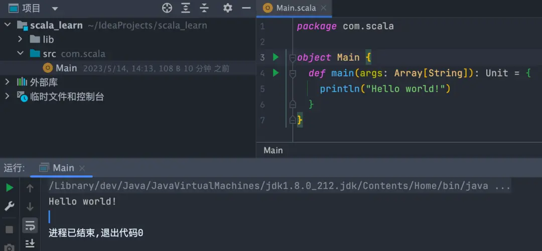 新建一個Scala項目,運行Hello Wrold試一下。