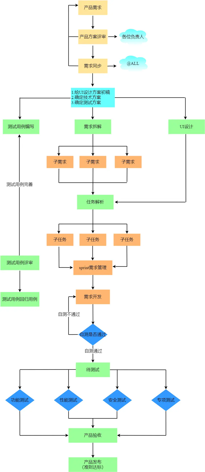 軟件開發流程即軟件設計思路和方法的一般過程,包括對軟件先進行需求分析,設計軟件的功能和實現的算法和方法、軟件的總體結構設計和模塊設計、編碼和調試、程序聯調和測試。軟件項目開發流程圖是用來詳細描述了軟件在開發過程中產品調研、設計、開發、測試等各個階段中各個角色,包含產品經理、研發、測試、用户等需...