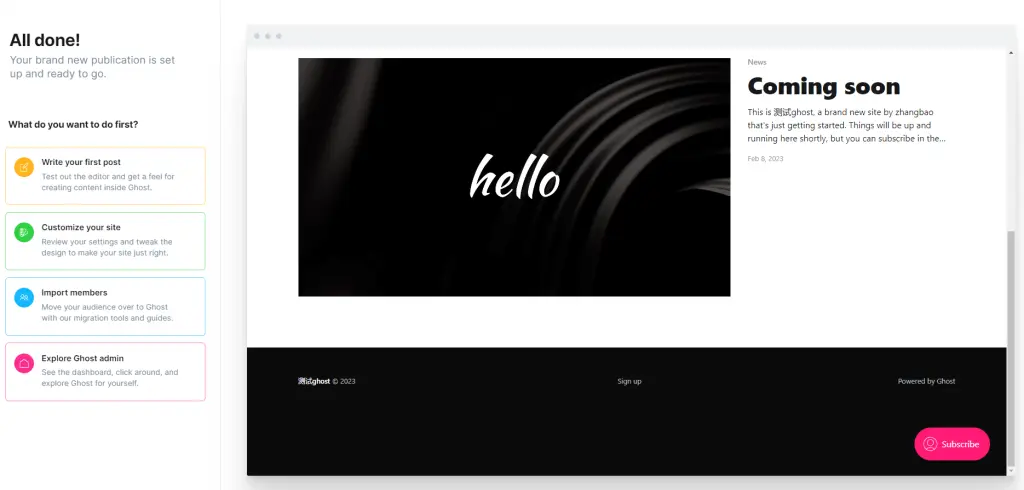 這樣就可以了。ghost文檔:https://ghost.org/tutorials/。