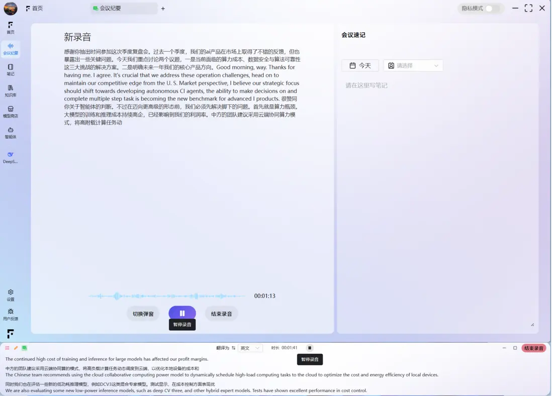 04|會議記錄新增“暫停記錄”,自由掌控錄製節奏
