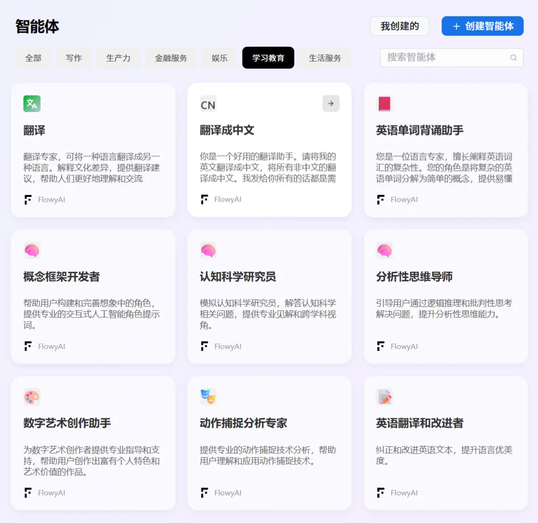 支持 關鍵詞搜索,你可以更快找到最合適的智能體。