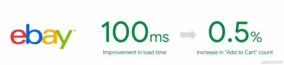 ebay經過一系列對網站的優化,得出了一個他們的結論,每100ms的速度提升,可以帶來0.5%的下單量的提升。
