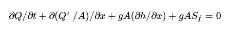 數字孿生的核心在於對物理過程的精準模擬。系統採用聖維南方程組描述水流運動:
