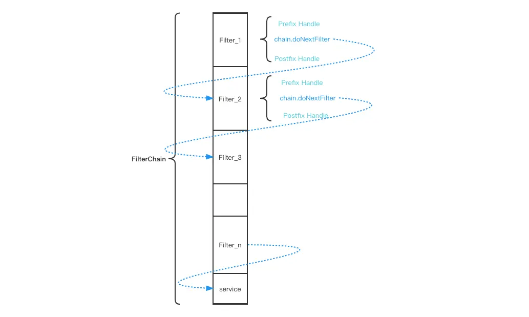 Filter:單個Filter,實現自身的邏輯,調用下一個Filter